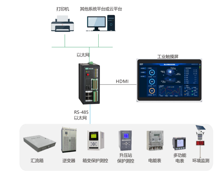 ·通過異構(gòu)網(wǎng)絡(luò)構(gòu)建,負(fù)責(zé)采集本地電網(wǎng)、分布式資源的運(yùn)行數(shù)據(jù),如BMS、PCS、環(huán)控、空調(diào)等設(shè)備,支持RS485\LAN接口,支持MODBUS、IEC104、DLT645等各種物聯(lián)網(wǎng)協(xié)議;